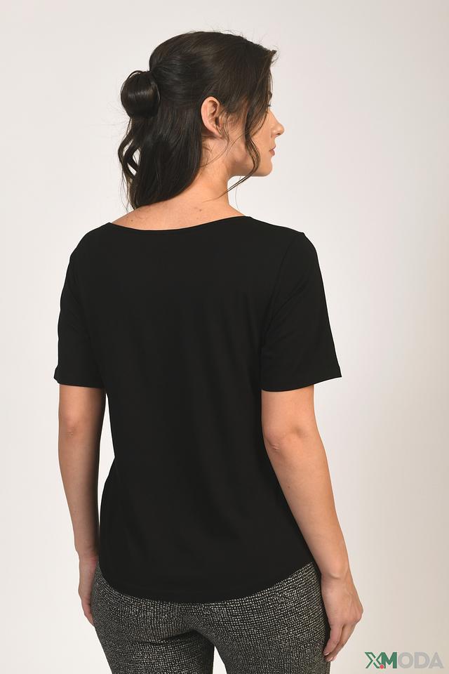 Эта футболка от Monari – идеальный выбор для создания повседневного, но выразительного образа. Выполнена в классическом чёрном цвете, который легко сочетается с любой одеждой.