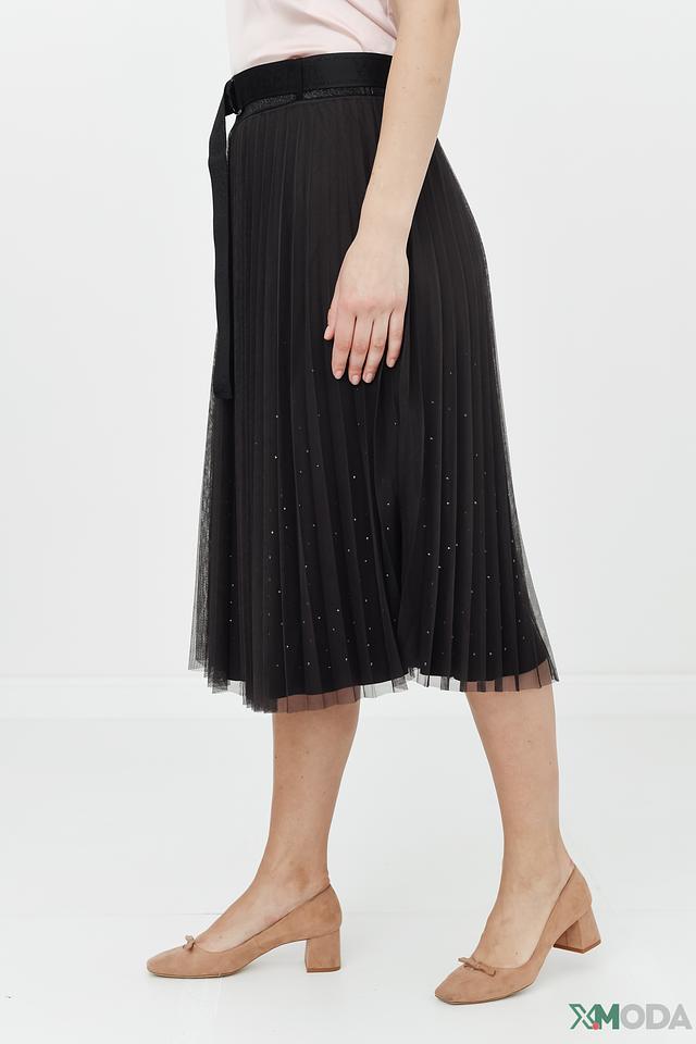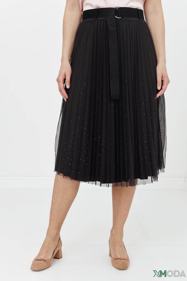 Чёрная плиссированная юбка от Monari – элегантный выбор для создания стильного образа. Модель выполнена из полиэстера с подкладкой из вискозы и эластана, украшена деликатной вышивкой в виде мелких страз и дополнена съёмным поясом. Состав: полиэстер 100%, Состав_подкладка вискоза 95%, Состав_подкладка эластан 5%