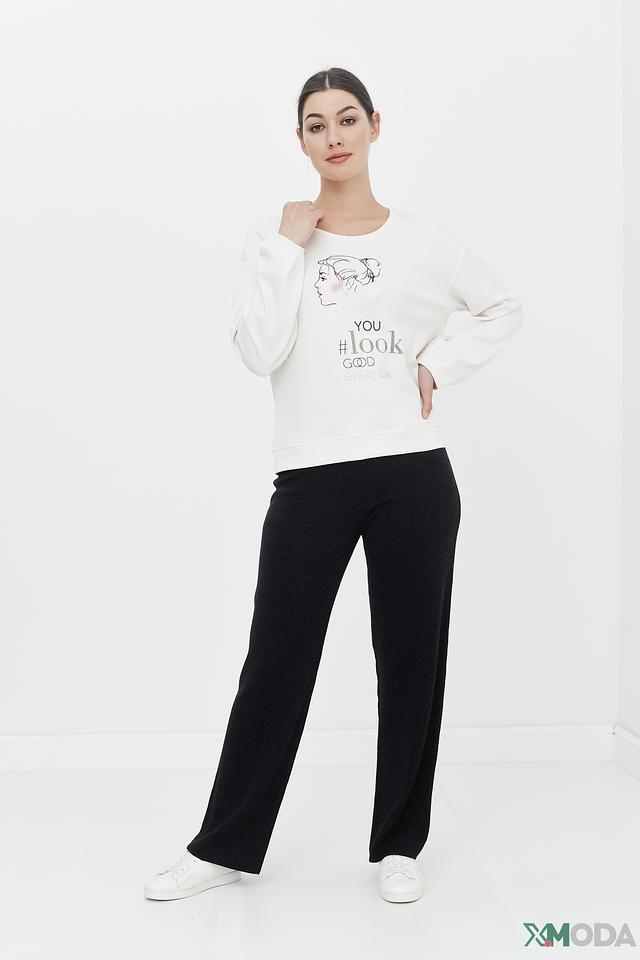 Брюки имеют прямой крой, который визуально удлиняет силуэт и обеспечивает свободу движений. Высокая посадка подчеркивает талию и создает женственный образ. Ткань, состоящая из 50% шерсти и 50% полиакрила, отличается мягкостью, приятными тактильными ощущениями и хорошей износостойкостью.