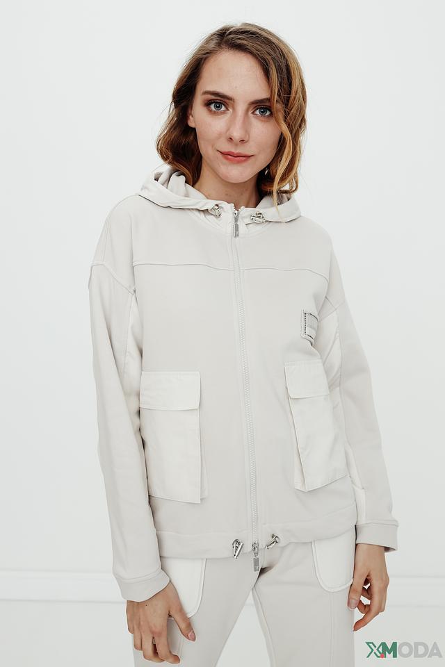 Эта женская толстовка от Monari выполнена в нежном бежевом цвете и станет отличным дополнением к вашему гардеробу. Модель имеет удобную застежку-молнию и практичные карманы, что делает ее не только стильной, но и функциональной.
