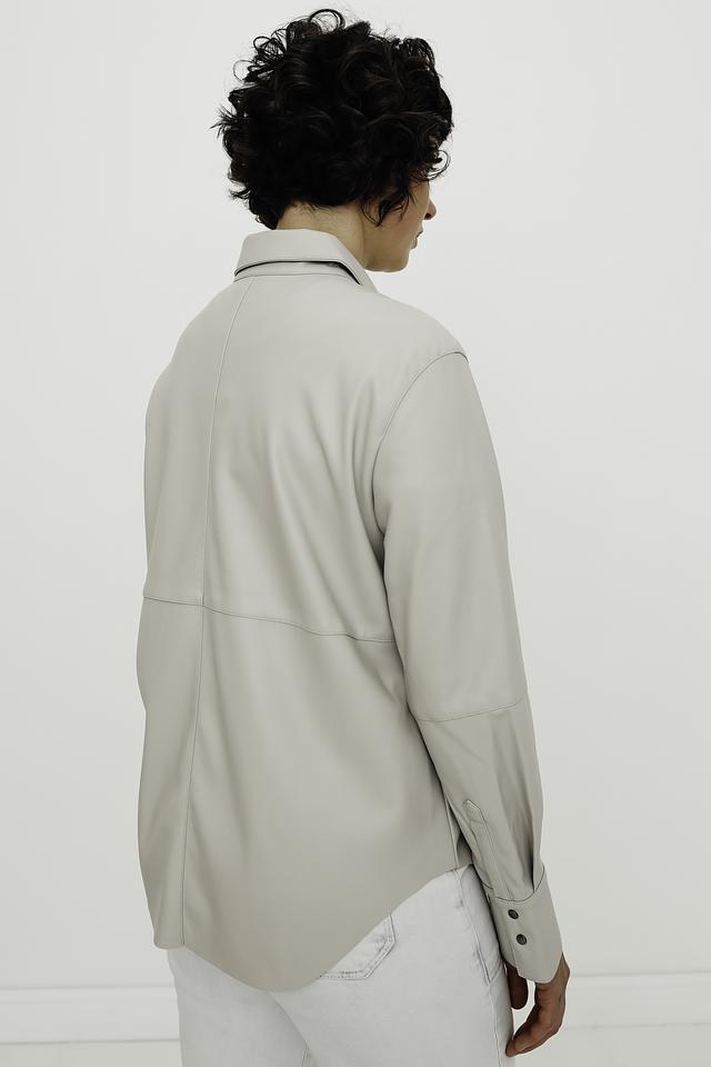 Эта рубашка от Monari станет ярким акцентом вашего гардероба. Выполнена в бежевом цвете из сочетания полиуретана и полиэстера, имитирующего кожу, что придает ей особый шарм и текстуру.