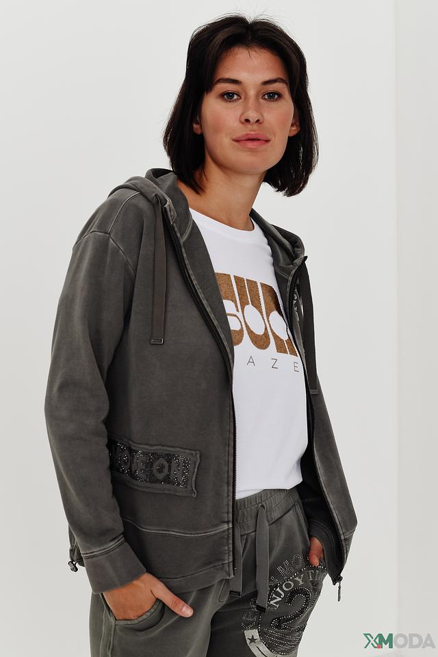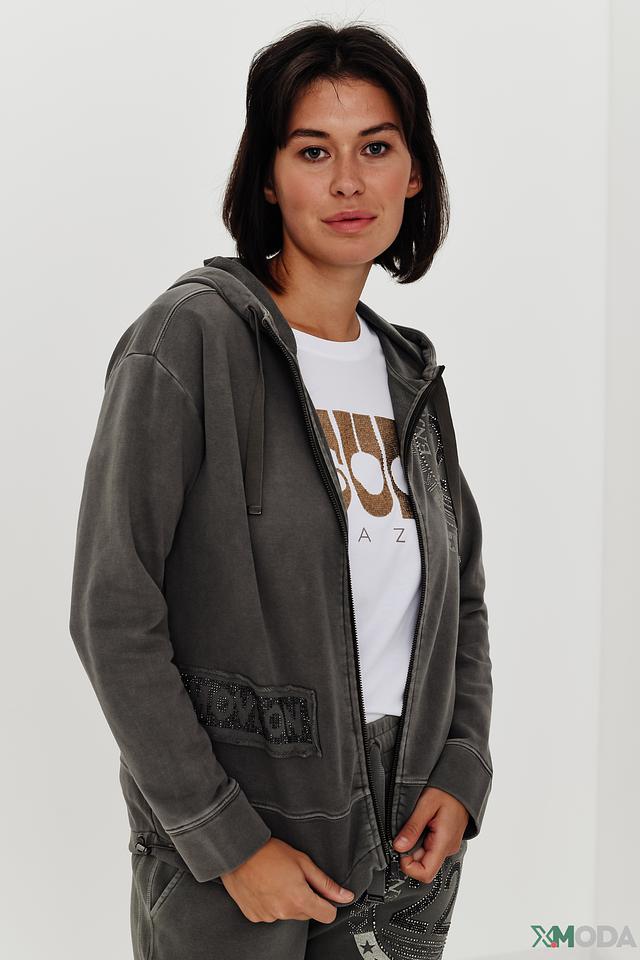 Этот жакет от Monari станет отличным дополнением к вашему гардеробу. Модель выполнена в сером цвете и имеет удобный капюшон.