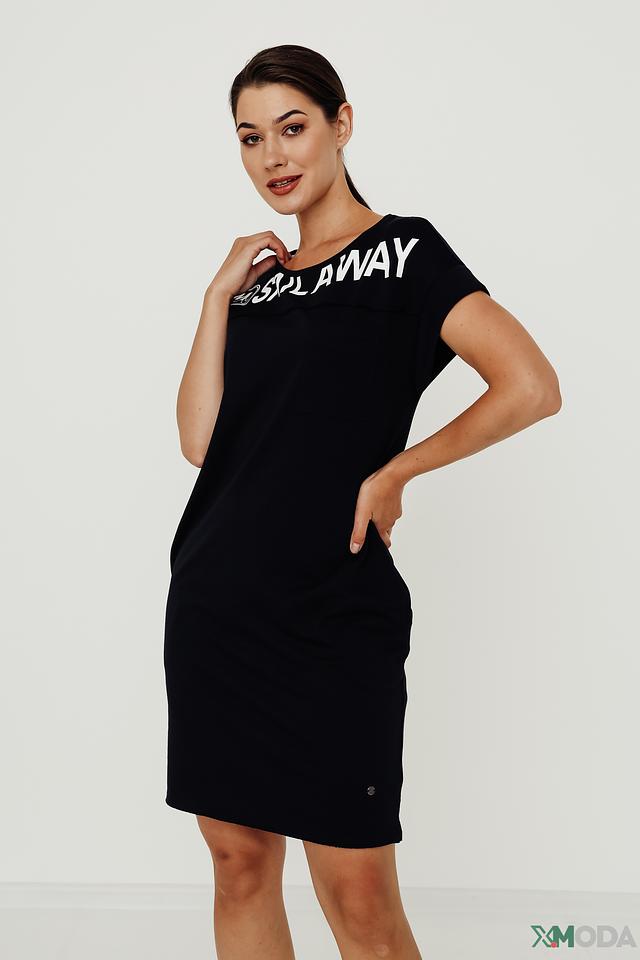 Это стильное платье от Monari станет отличным дополнением к вашему гардеробу. Выполнено в классическом чёрном цвете, оно украшено ярким белым принтом "SAIL AWAY" на плече, что придает ему оригинальность и динамичность.
