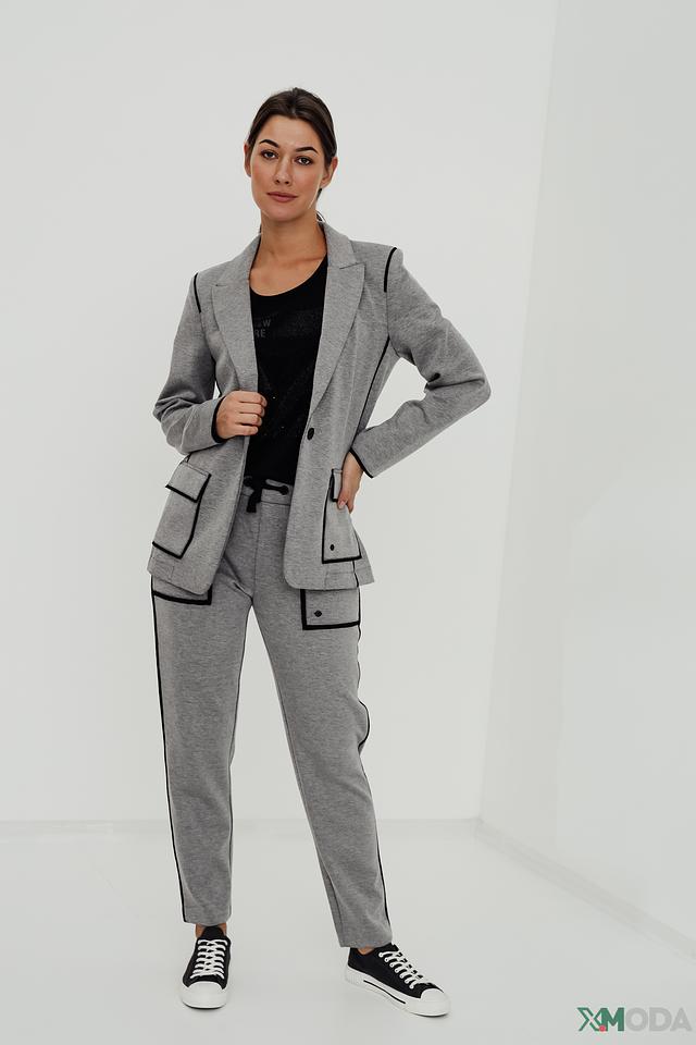 Серые брюки от Monari — удобная и стильная модель с контрастными полосками. Изготовлены из мягкой ткани с добавлением вискозы и эластана, обеспечивающих комфорт и свободу движений. Идеальный выбор для создания повседневных образов. Состав: полиэстер 55%, вискоза 38%, эластан 7%