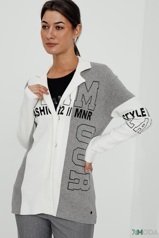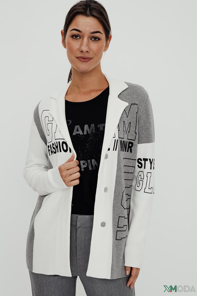 Жакет Monari белого и серого цвета с ярким принтом – стильное и комфортное решение для создания модных образов. Модель выполнена из мягкого хлопка и имеет свободный крой. Состав: хлопок 100%