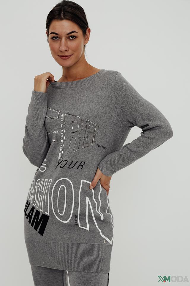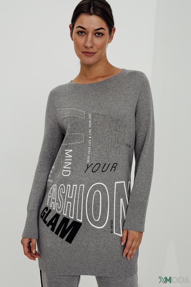 Серое платье от Monari – это стильное и комфортное решение для повседневного образа. Модель выполнена из мягкого трикотажа с актуальным принтом и украшена декоративной отделкой. Состав: хлопок 100%