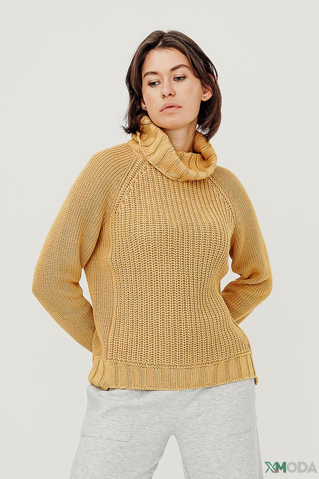 Крупная вязка придает изделию текстуру и объем. Горчичный цвет делает водолазку яркой и стильной. Она прекрасно сочетается с джинсами, брюками или юбками.