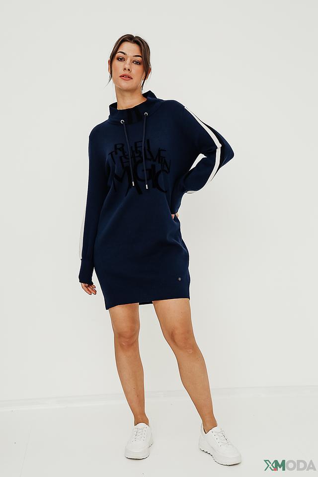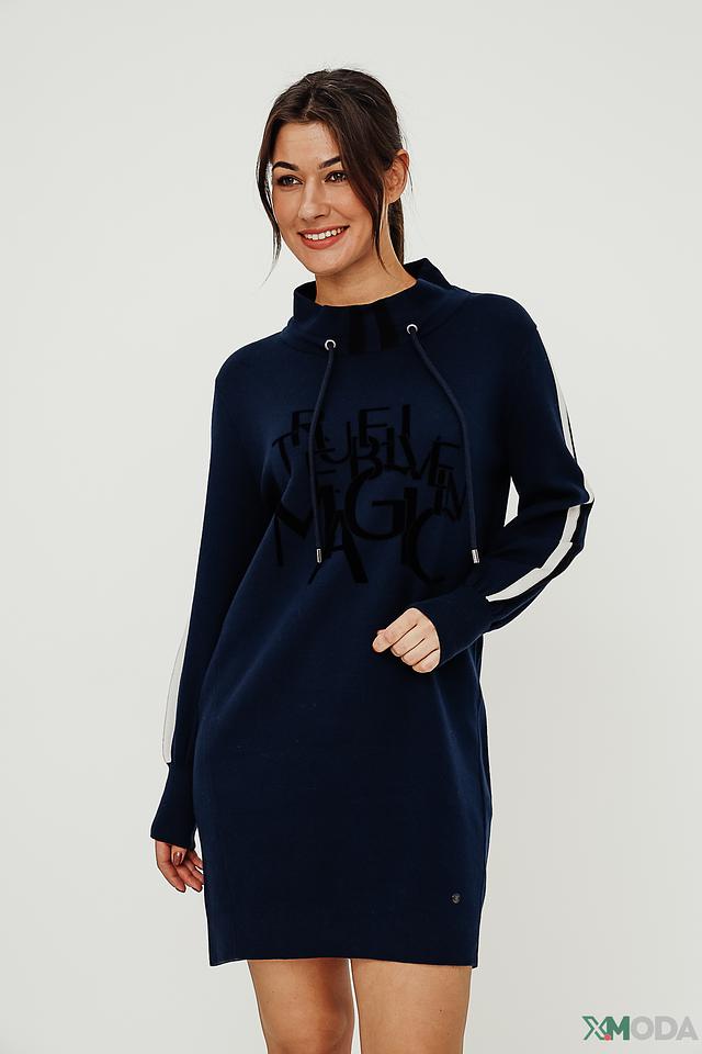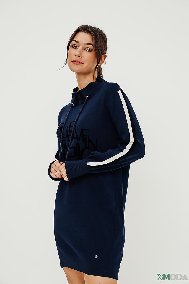 Платье Monari трикотажное синее с капюшоном