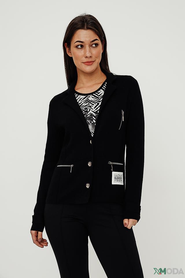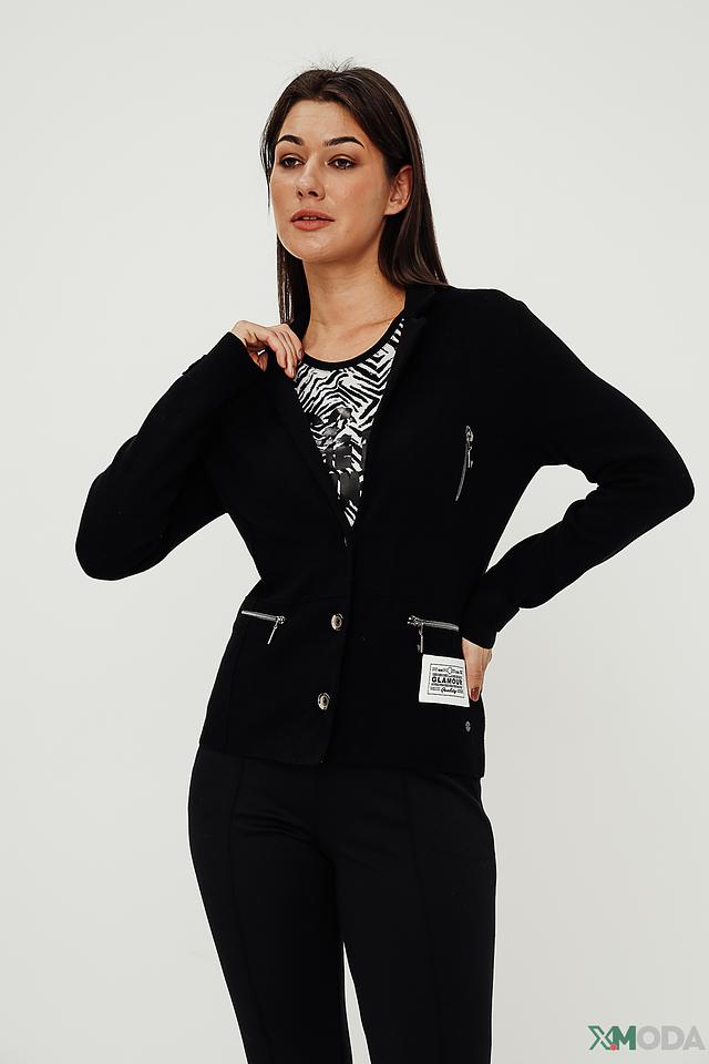 Кардиган имеет приталенный силуэт, который подчеркивает фигуру, и застёжку на две пуговицы. Боковые карманы на молнии добавляют функциональности и практичности.