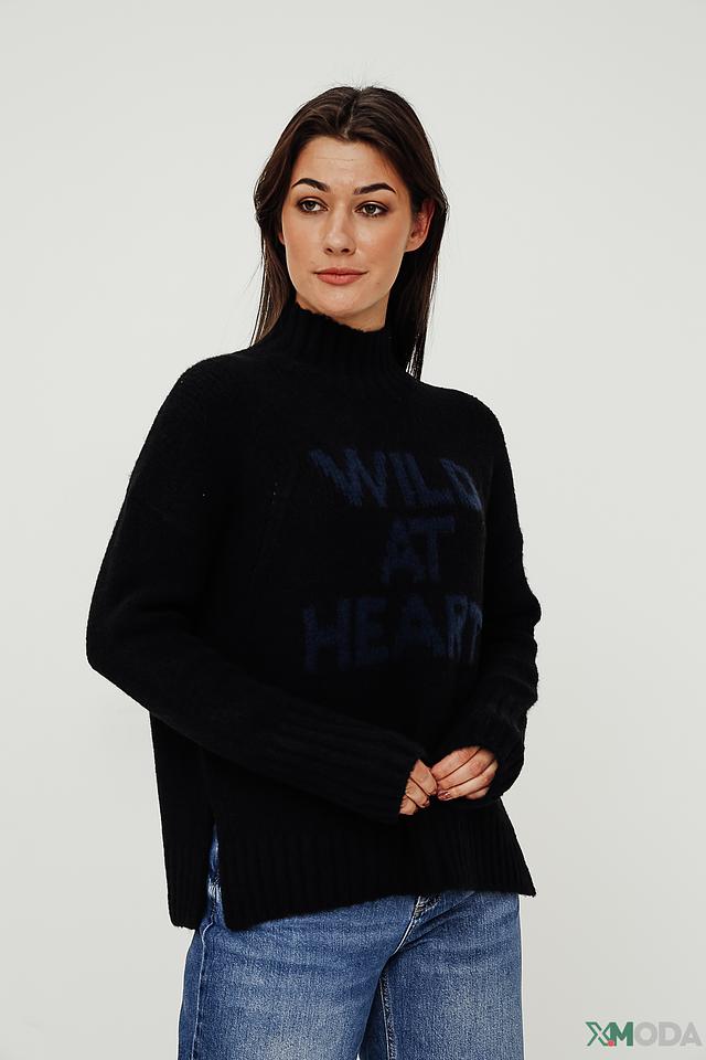 Эта стильная водолазка от Monari выполнена в классическом чёрном цвете и украшена эффектным принтом "Wild at Heart". Модель имеет удобный крой, который подчеркивает фигуру, не сковывая движений.