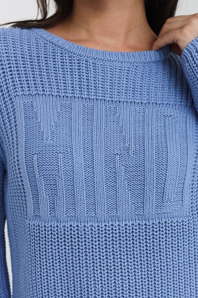 Пуловер имеет круглый вырез горловины и длинные рукава. Он идеально сочетается с джинсами, брюками или юбками, создавая стильный и непринужденный образ. Состав: 100% хлопок.