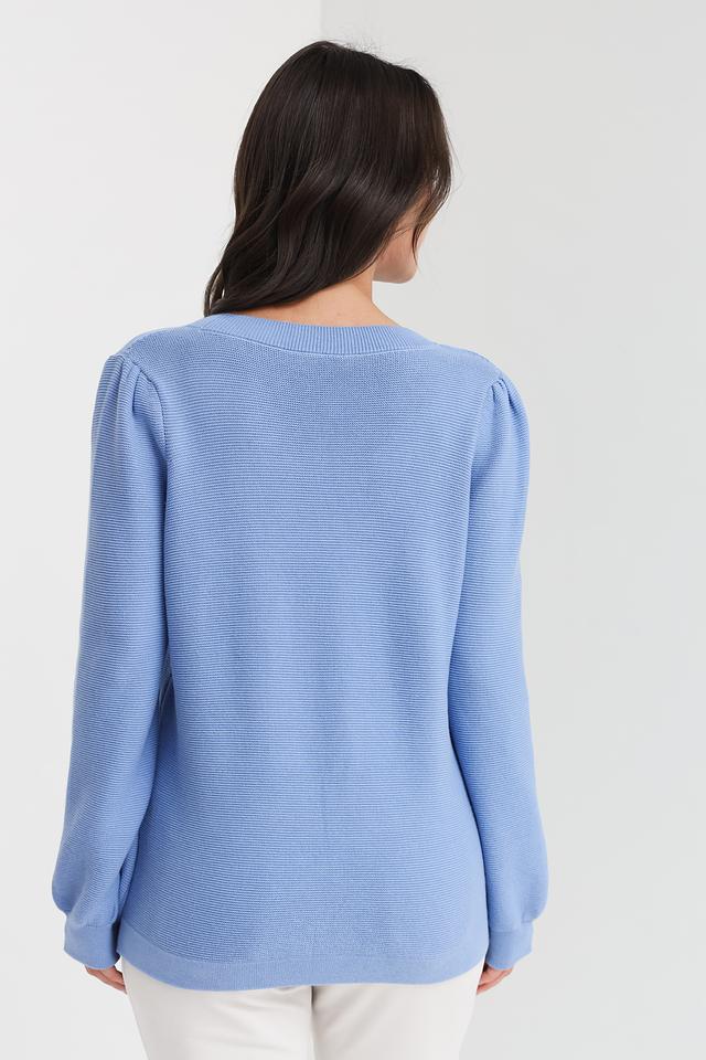 Благодаря своему универсальному голубому цвету, этот пуловер легко сочетается с различными элементами одежды, от джинсов и брюк до юбок и платьев. Он идеально подходит для создания как повседневных, так и более нарядных образов.