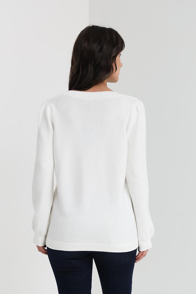Этот элегантный пуловер от Monari станет прекрасным дополнением к вашему гардеробу. Пуловер выполнен в белом цвете и имеет классический V-образный вырез, который подчеркивает женственность силуэта.