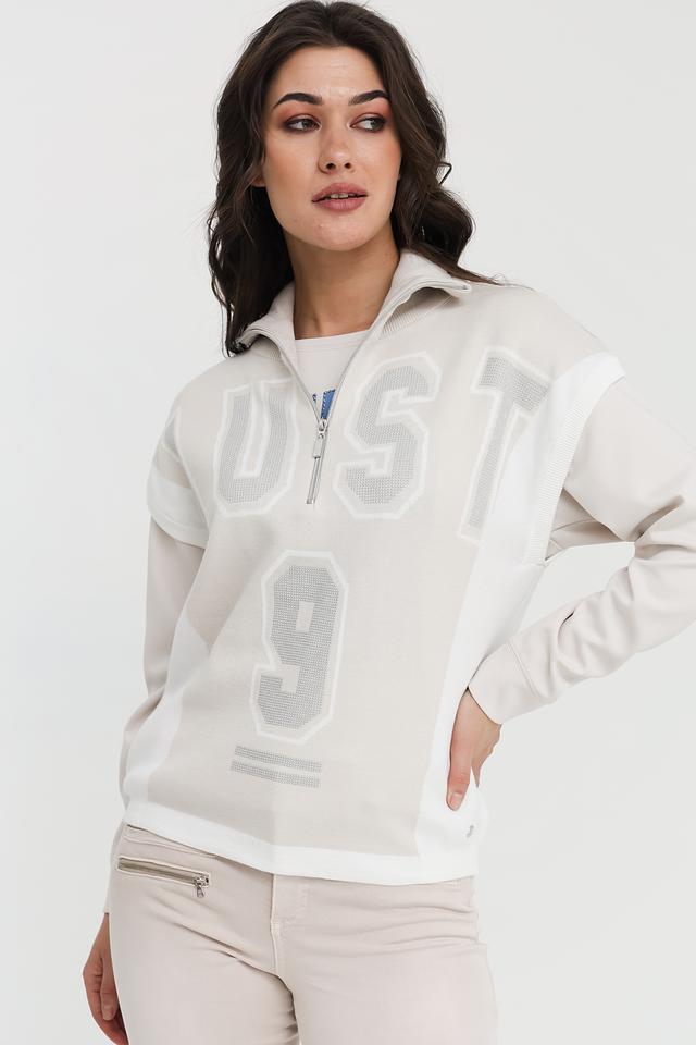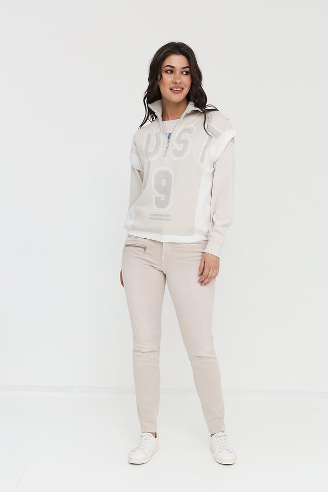 Стильный жилет Monari светло-бежевого цвета с оригинальным принтом и застежкой-молнией станет отличным дополнением к вашему образу. Модель выполнена из мягкого хлопка с добавлением полиамида, что обеспечивает комфорт и удобство в носке. Состав: хлопок 90%, полиамид 10%