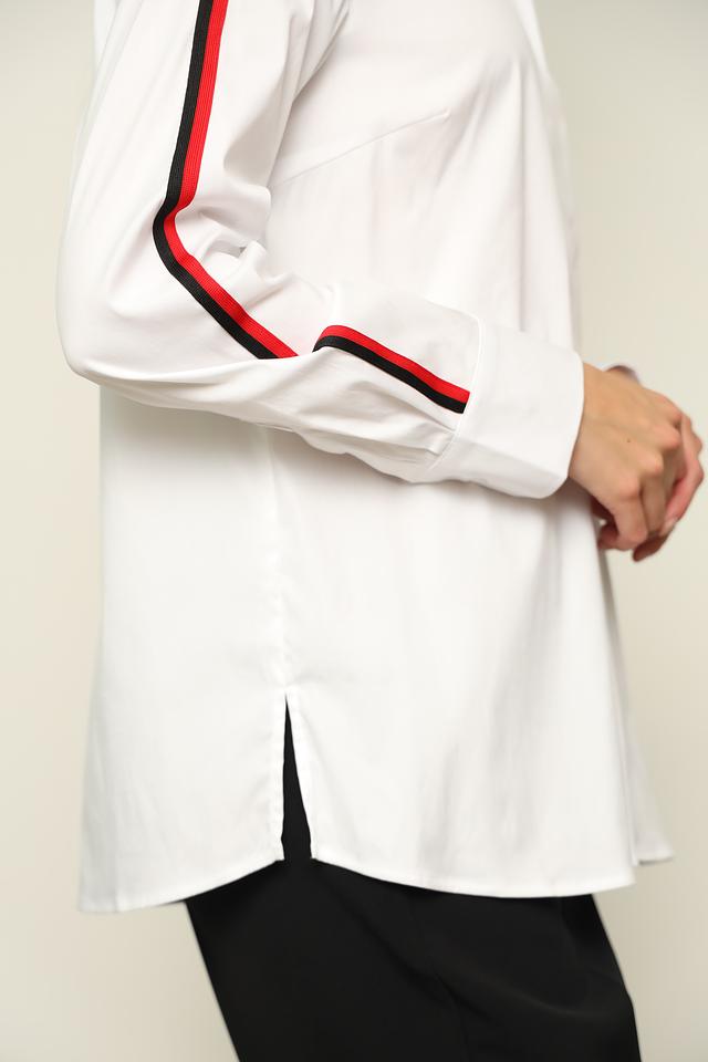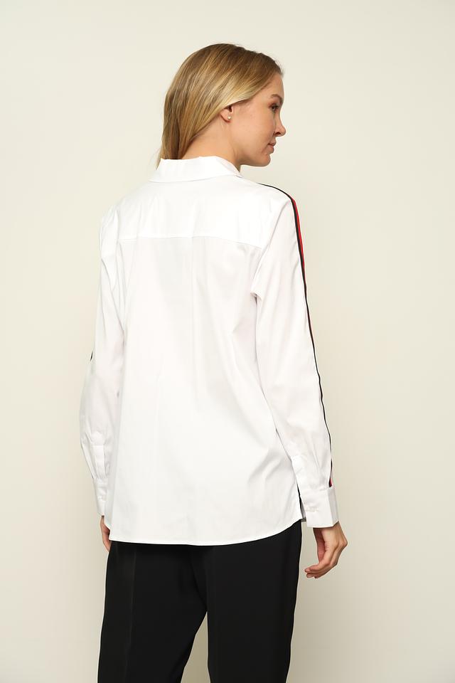 Белая рубашка Monari с длинным рукавом, украшенная контрастными полосками по бокам. Классический крой и качественный состав обеспечивают комфорт и стиль. Состав: хлопок 75%, полиамид 22%, эластан 3%