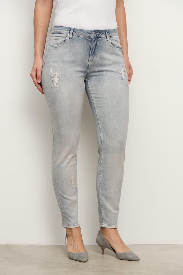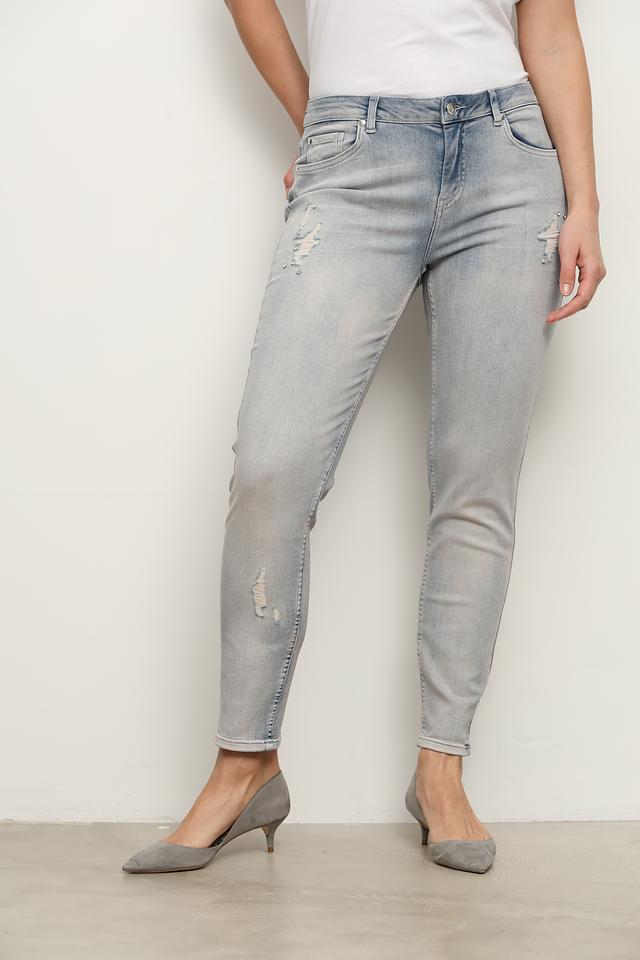 Светло-серые джинсы Monari – это стильная модель с эффектными рваностями. Плотный хлопок с добавлением эластана обеспечивает комфорт и отличную посадку по фигуре. Идеальный выбор для создания повседневных образов. Состав: хлопок 97%, эластан 3%