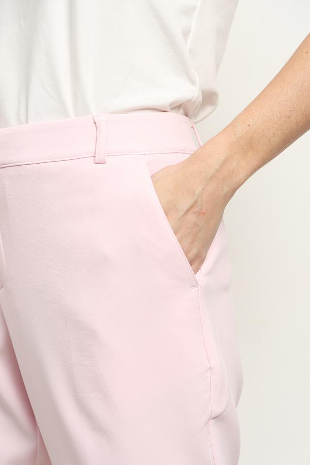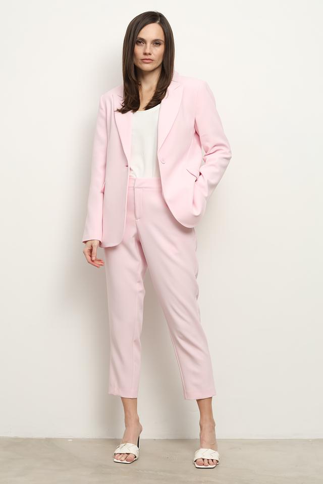 Представляем вашему вниманию классические брюки от бренда Monari. Эта модель выполнена в нежном пудрово-розовом цвете, который придаёт образу женственность и легкость.