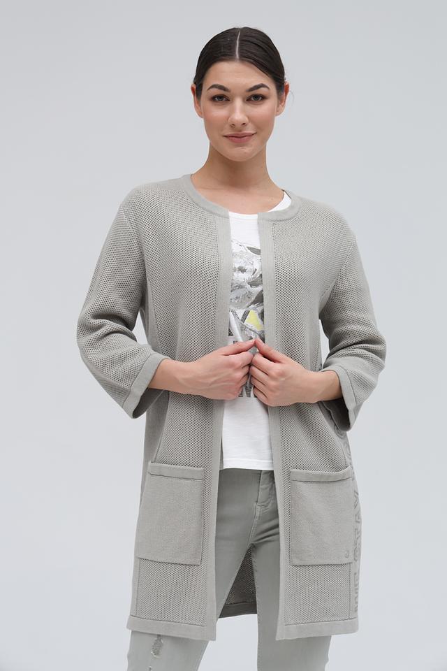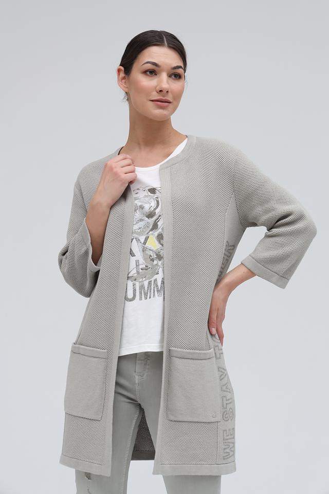 Серый жакет Monari – это стильная и комфортная модель ажурного плетения. Жакет имеет удобную длину и рукава 3/4, а также практичные карманы. Изготовлен из 100% хлопка. Состав: хлопок 100%