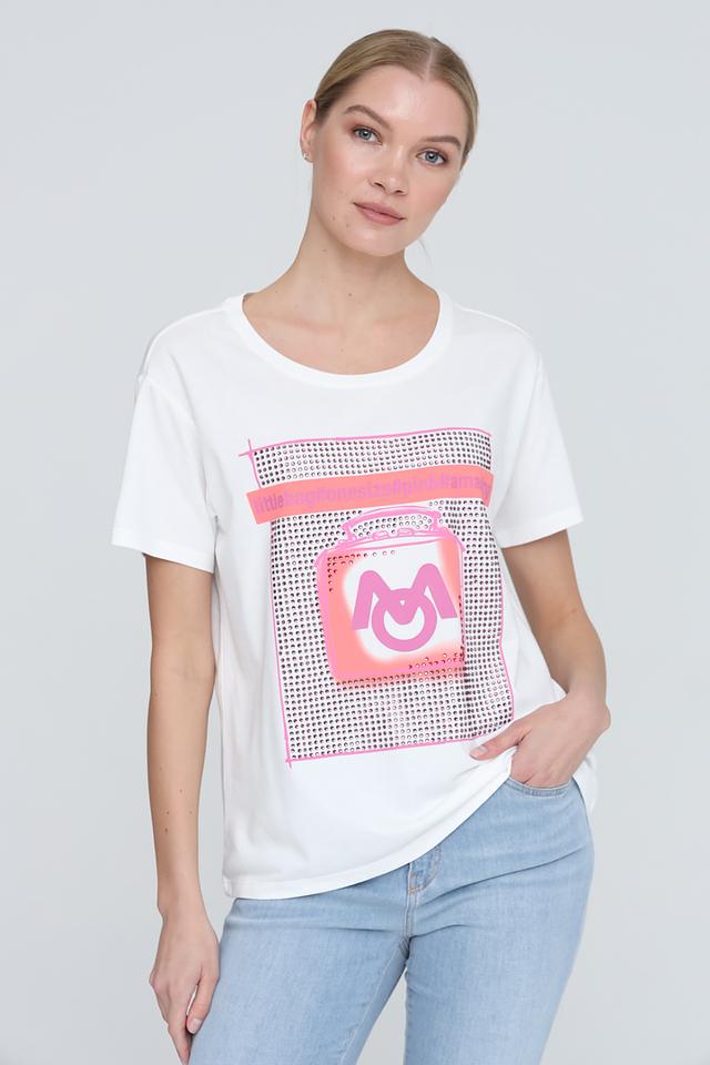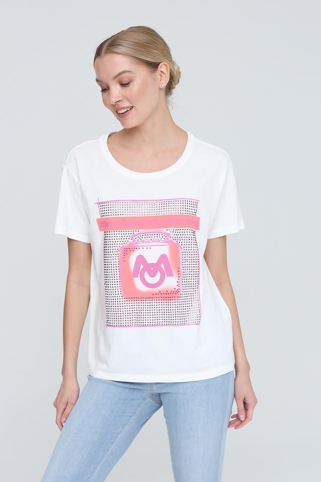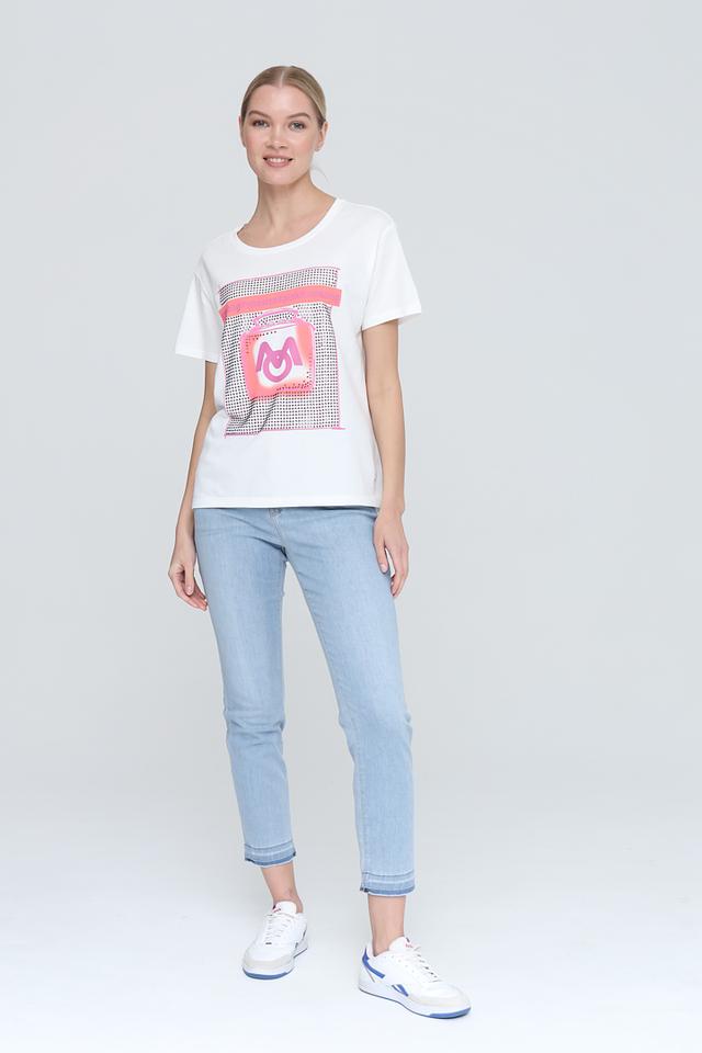 Белая футболка Monari с ярким принтом – стильное и комфортное решение для повседневного образа. Изготовлена из мягкого хлопка с модалом, обеспечивающего приятные ощущения на коже. Состав: хлопок 50%, модал 50%
