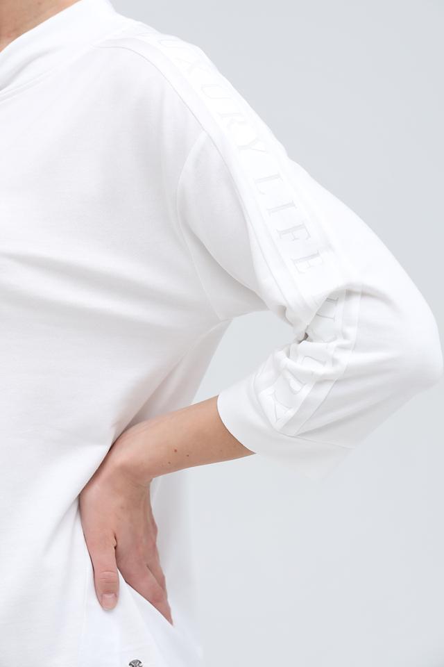 Рукава джемпера – три четверти, что делает его идеальным для теплой погоды или для создания многослойных образов. На рукавах присутствует надпись, добавляющая изюминку в дизайн. Джемпер выполнен из высококачественного хлопка и модала, что обеспечивает мягкость и приятные ощущения на коже.