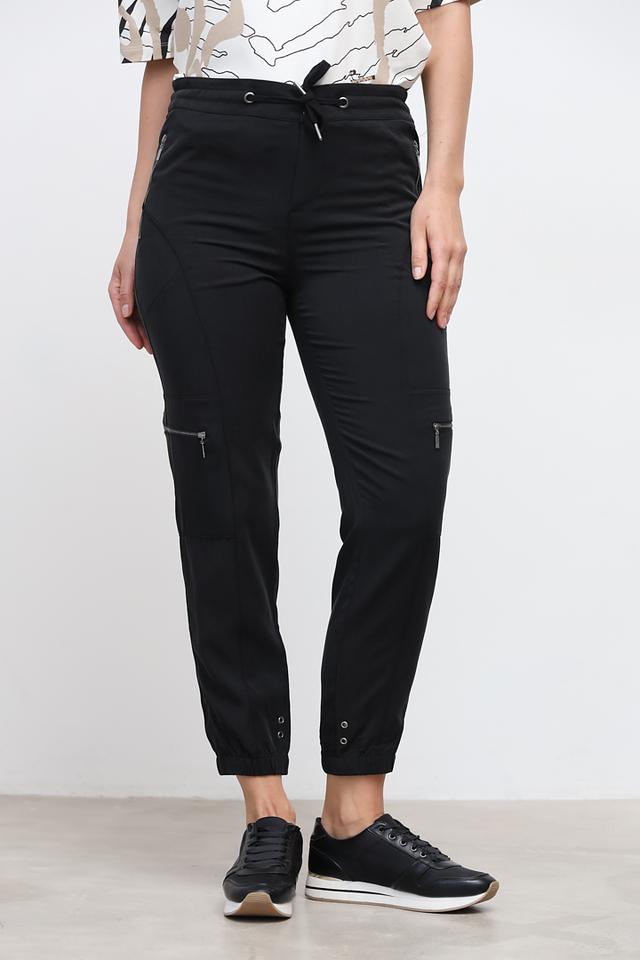 Декоративные карманы на бёдрах с молниями добавляют брюкам функциональности и стильный акцент. Манжеты внизу брюк дополняют современный дизайн. Состав: 100% лиоцел.