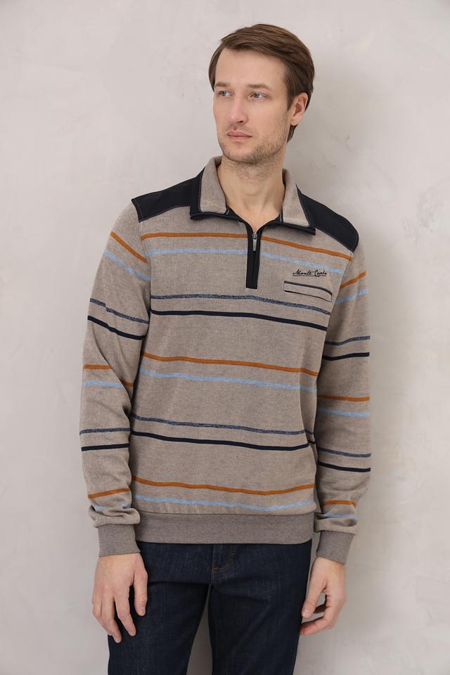 Мужской джемпер Monte Carlo серого цвета с полосатым узором и застежкой-молнией на воротнике. Изготовлен из 100% хлопка, обеспечивающего комфорт и удобство в носке. Состав: хлопок 100%