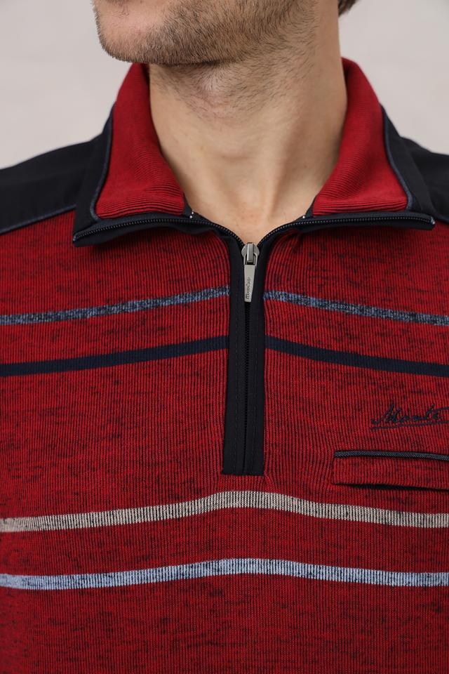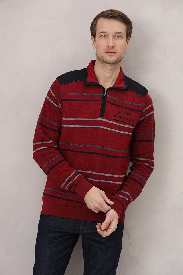 Мужской джемпер Monte Carlo бордового цвета с полосатым узором и воротником-стойкой на молнии. Изготовлен из 100% хлопка, обеспечивающего комфорт и удобство в носке. Состав: хлопок 100%