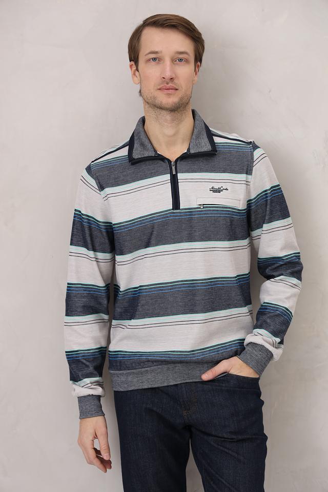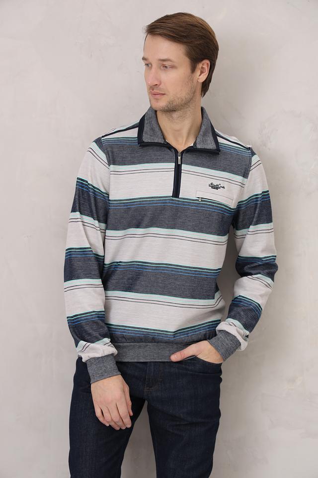 Представляем вашему вниманию стильный мужской джемпер от бренда Monte Carlo. Эта модель выполнена в серо-синей цветовой гамме с выразительным полосатым узором, который придаёт ей современный и динамичный вид.