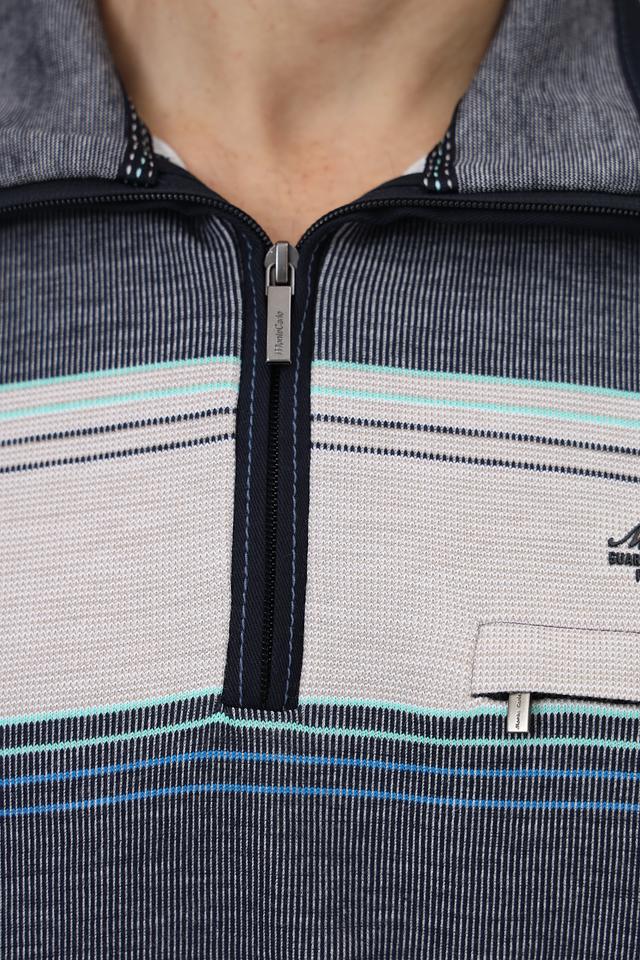 Мужской джемпер Monte Carlo серого цвета с полосатым узором и короткой молнией на воротнике. Изготовлен из 100% хлопка, обеспечивающего комфорт и удобство в носке. Состав: хлопок 100%