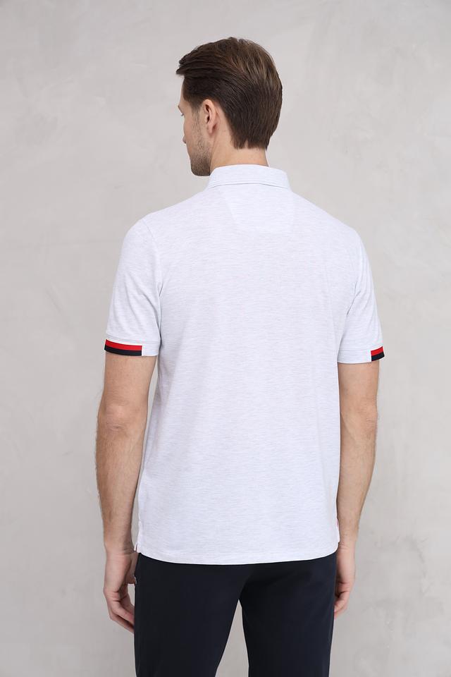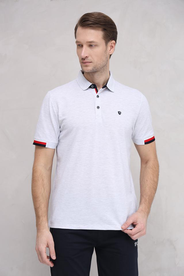 Стильное мужское поло Monte Carlo серого меланжа с контрастной красной отделкой на воротнике и рукавах. Изготовлено из комфортного сочетания хлопка, полиэстера и эластана, обеспечивающего удобную посадку и долговечность. Состав: хлопок 65%, полиэстер 30%, эластан 5%