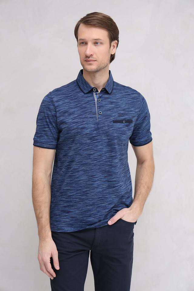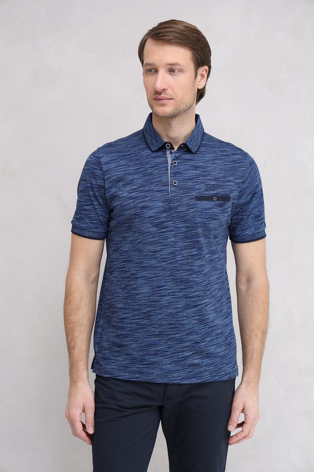 Мужское поло Monte Carlo синего цвета с выразительным меланжевым узором и коротким рукавом. Изготовлено из 100% хлопка, обеспечивающего комфорт и воздухопроницаемость. Отличается стильным дизайном с планкой на пуговицах и нагружным карманом. Состав: хлопок 100%