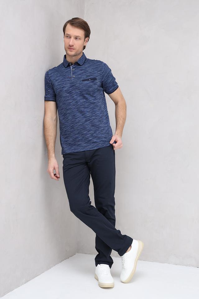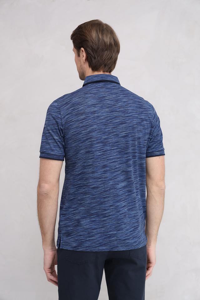 Поло имеет классический крой и короткий рукав, что делает его идеальным выбором для повседневной носки. Особенностью модели является меланжевый узор, придающий ей современный и динамичный вид.