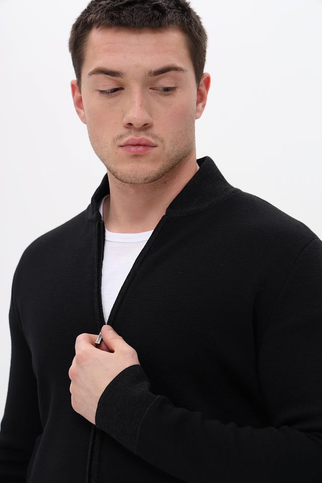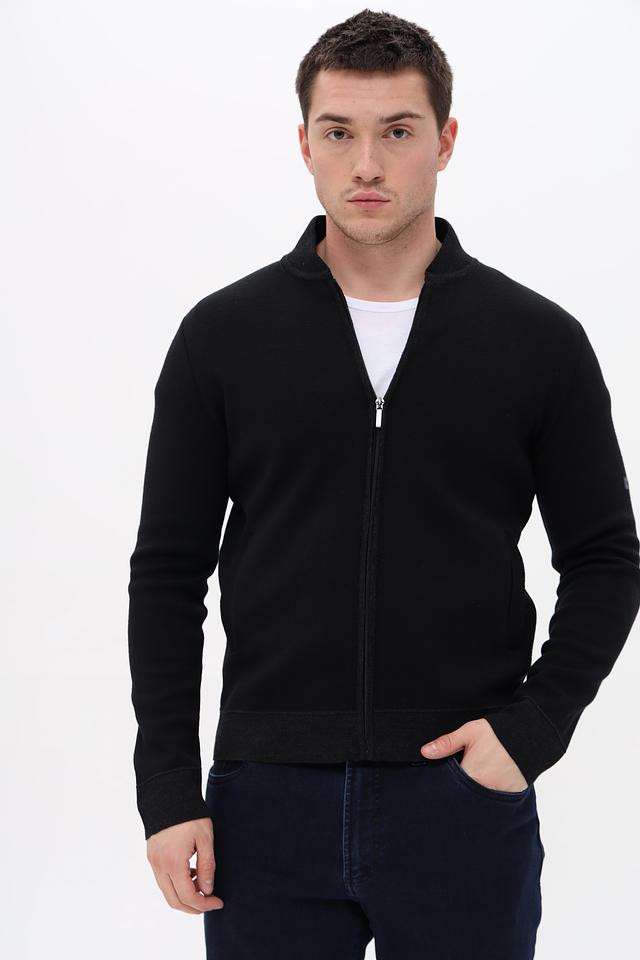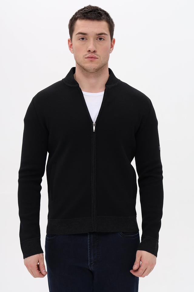 Мужской кардиган от Monte Carlo выполнен в классическом чёрном цвете. Модель имеет удобную застёжку на молнии и воротник-стойку, что делает её универсальной для различных погодных условий.