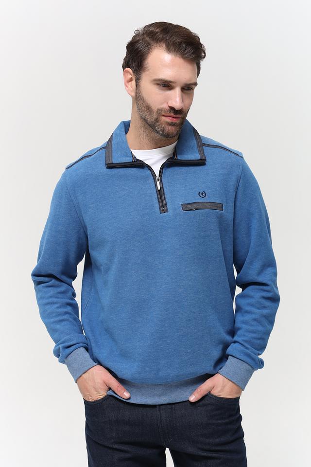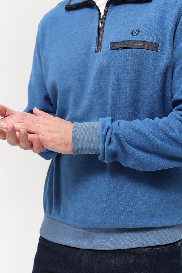Голубой джемпер Monte Carlo с короткой молнией и нагружным карманом. Изготовлен из мягкого хлопка, обеспечивающего комфорт в носке. Отличный выбор для создания повседневного образа. Состав: хлопок 100%