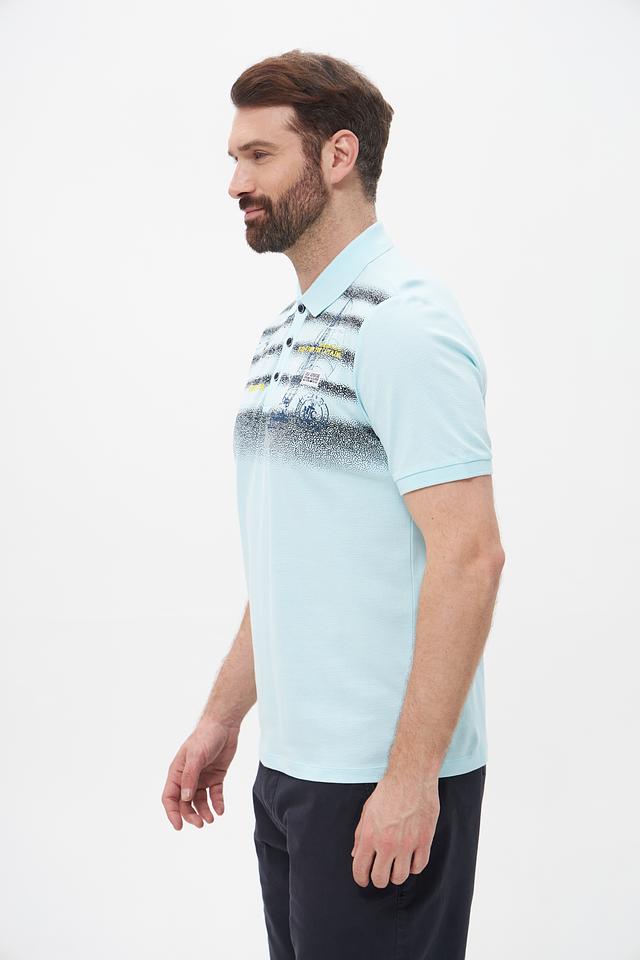 Стильное поло Monte Carlo голубого цвета с оригинальным принтом в морской тематике. Изготовлено из 100% хлопка, обеспечивающего комфорт и воздухопроницаемость. Идеальный выбор для создания повседневного образа. Состав: хлопок 100%