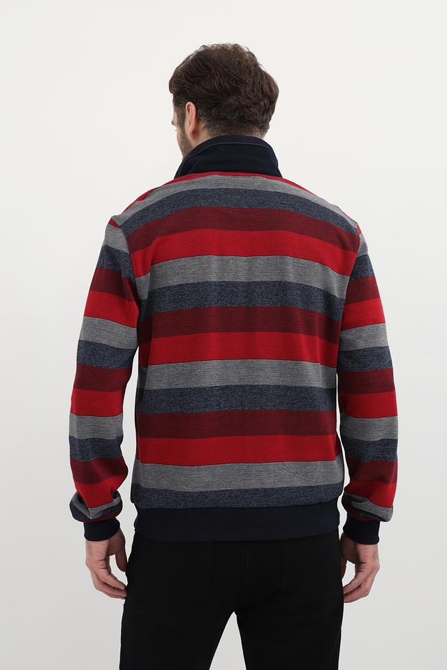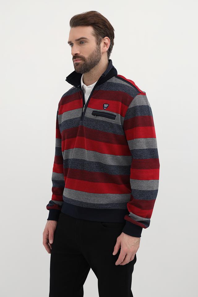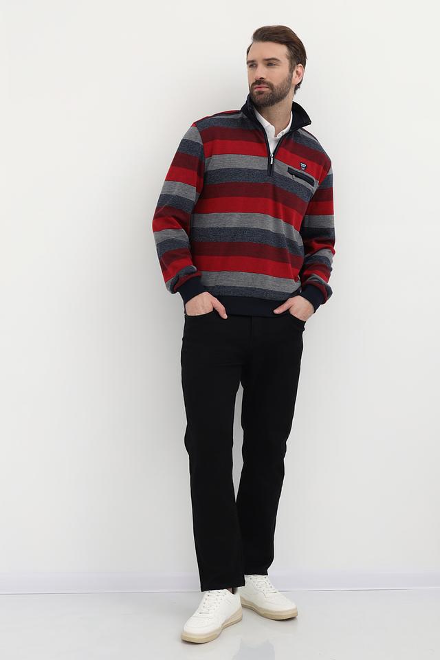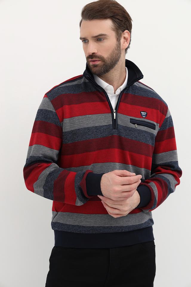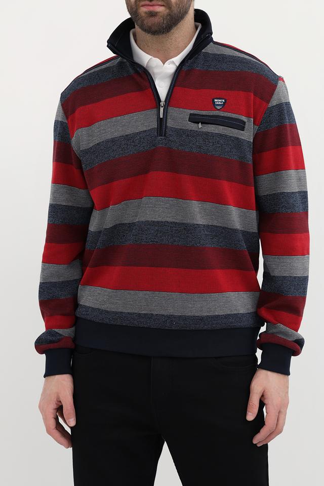 Мужской джемпер Monte Carlo красного цвета с полосатым узором и воротником-стойкой. Изготовлен из 100% хлопка, обеспечивающего комфорт и удобство в носке. Отличный выбор для создания стильного повседневного образа. Состав: хлопок 100%