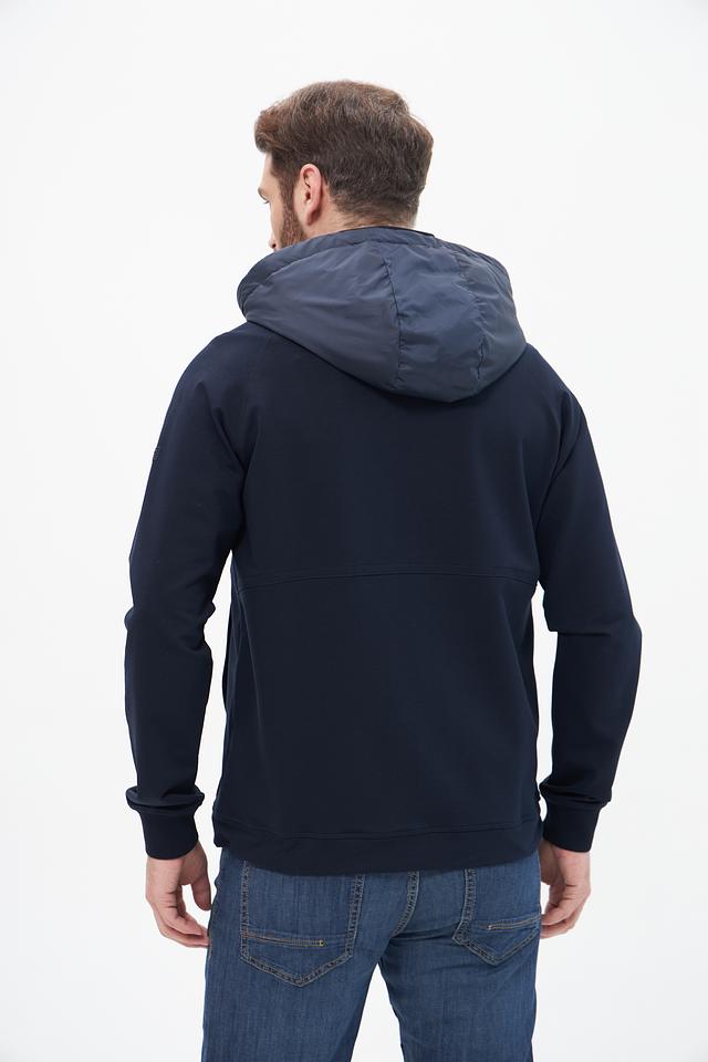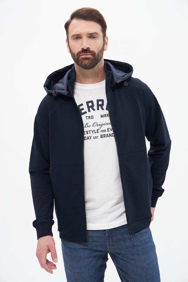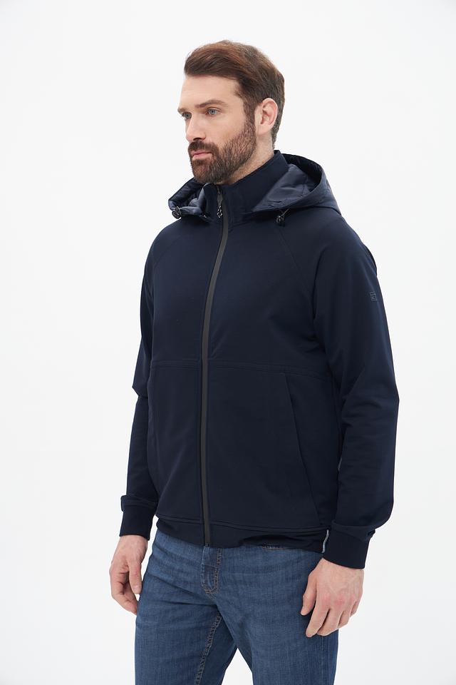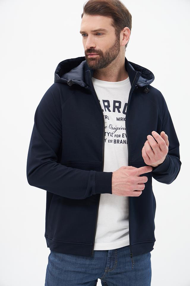 Кардиган имеет удобный капюшон, который защитит от ветра и непогоды. Застежка-молния позволяет регулировать степень теплоизоляции и создавать различные силуэты. Модель выполнена из высококачественного материала, сочетающего в себе хлопок, полиэстер и эластан, что обеспечивает комфорт, износостойкость и хорошую посадку по фигуре.