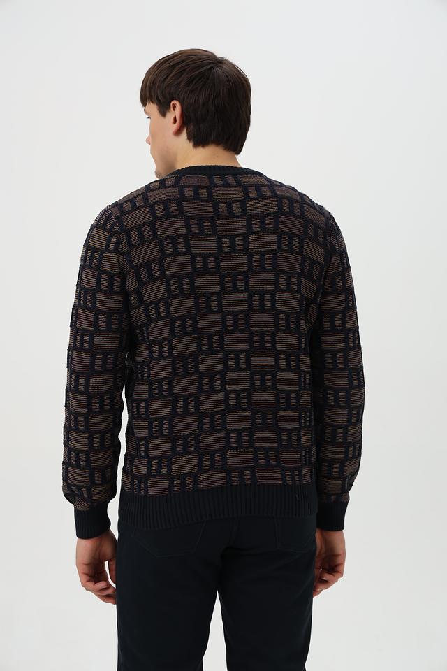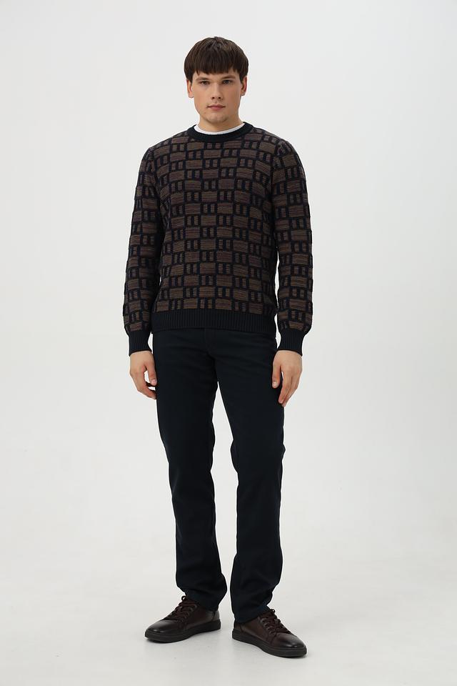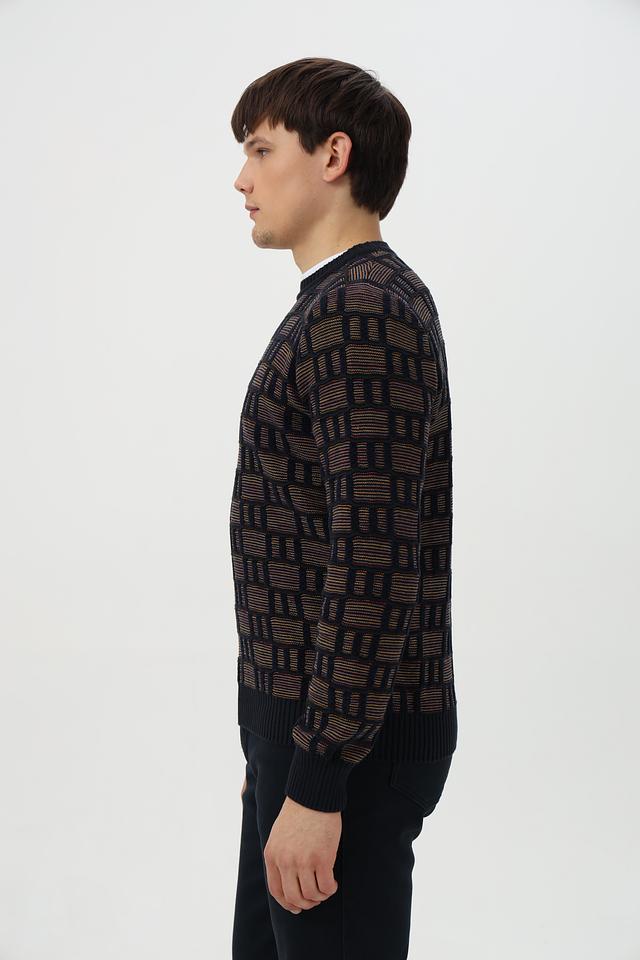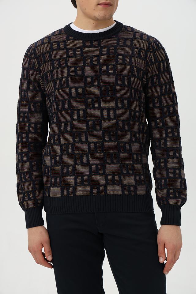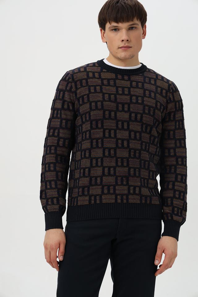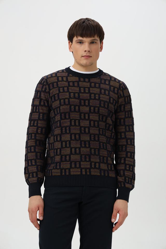 Мужской джемпер Monte Carlo тёмно-синего цвета с геометрическим узором. Изготовлен из мягкого и приятного к телу сочетания хлопка и полиакрила. Состав: хлопок 50%, полиакрил 50%