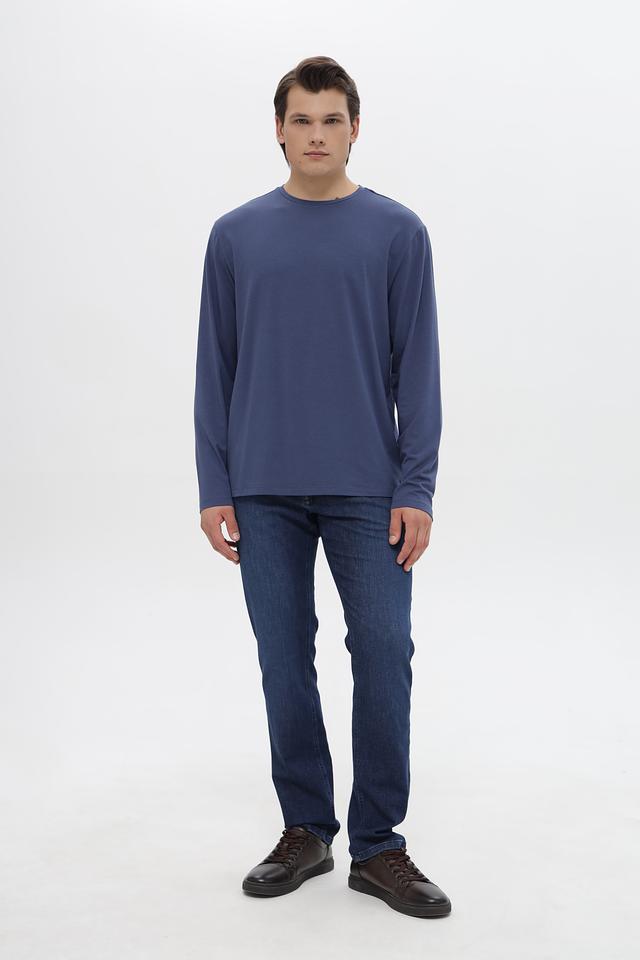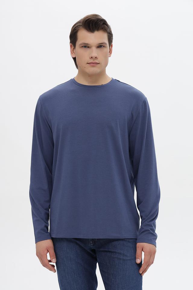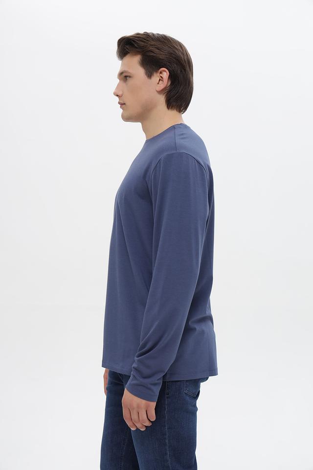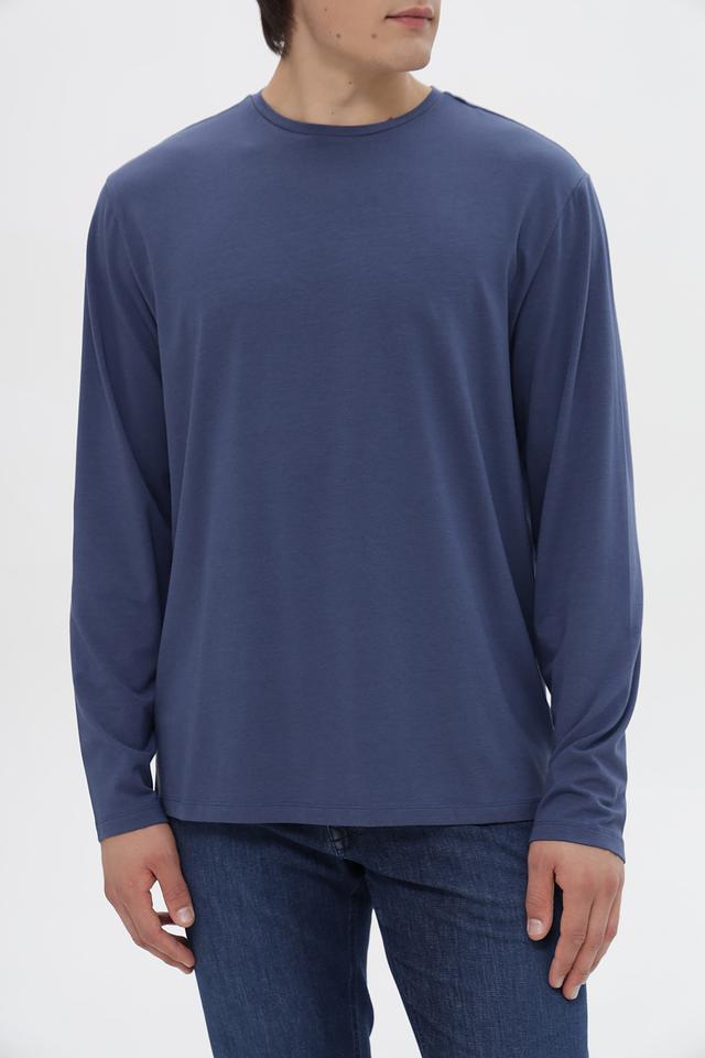 Лонгслив имеет классический крой и круглый вырез горловины. Синий цвет делает его универсальным элементом гардероба, который легко сочетается с различными стилями одежды. Прямой крой обеспечивает свободу движений и подходит для повседневной носки.