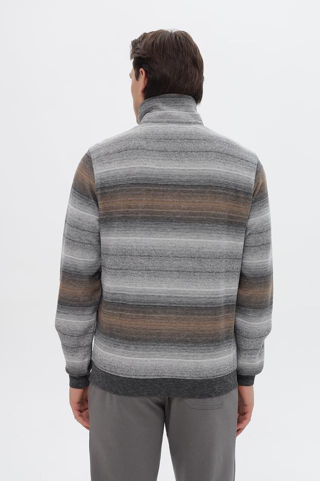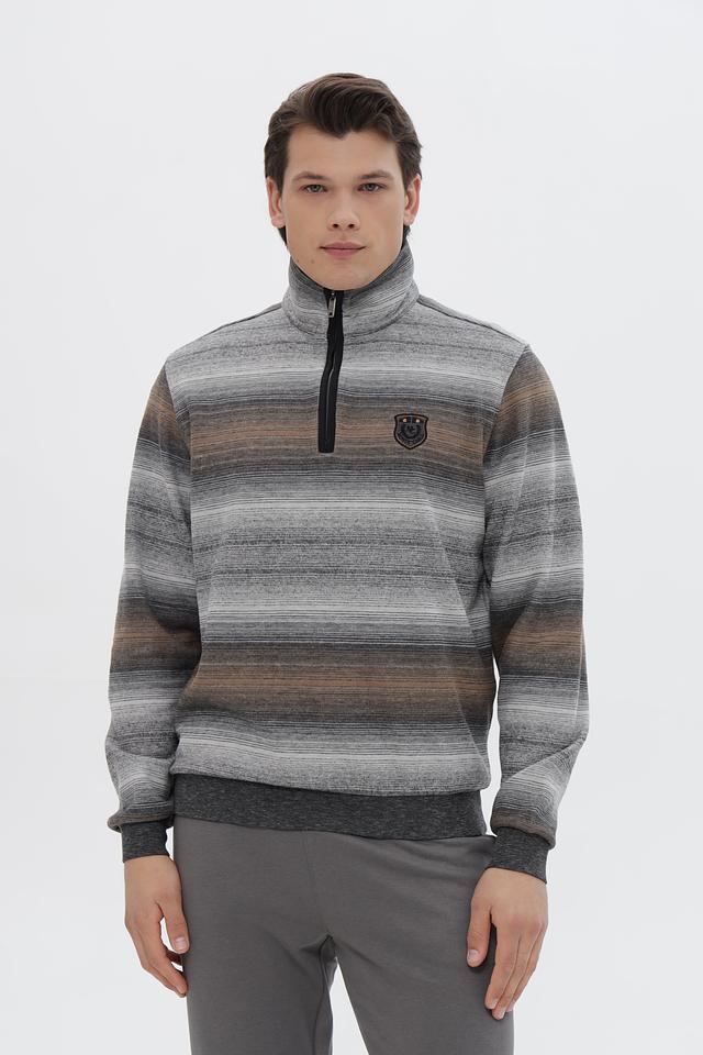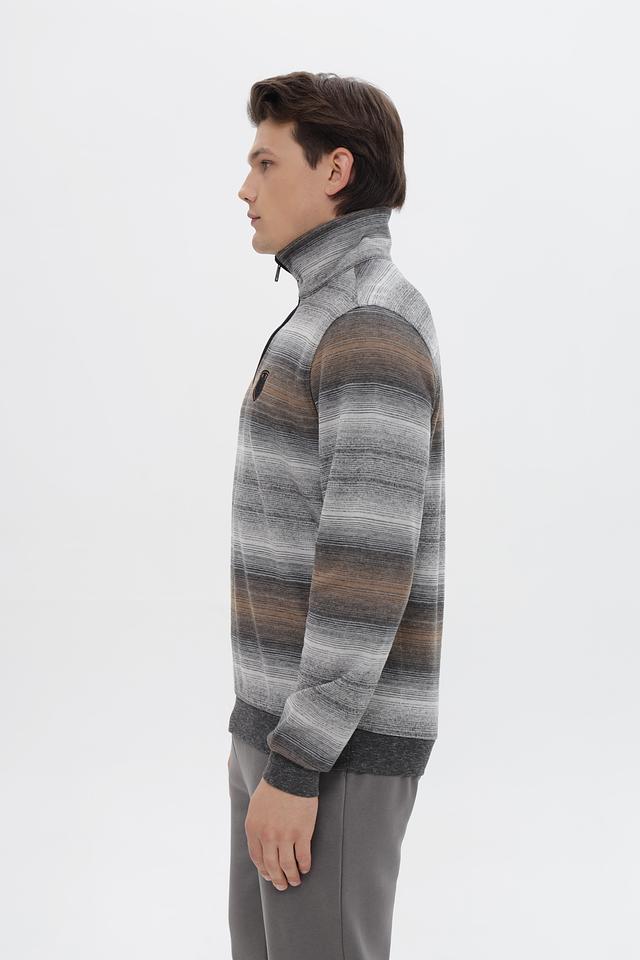 Мужской джемпер Monte Carlo серого цвета с полосатым узором и молнией на горловине. Изготовлен из хлопка с добавлением полиэстера для комфорта и долговечности. Состав: хлопок 80%, полиэстер 20%