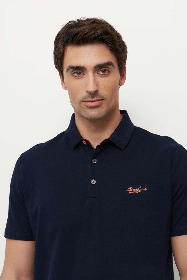 Тёмно-синее поло от Monte Carlo с яркой вышивкой на воротнике. Классический крой и 100% хлопковый состав обеспечивают комфорт и удобство в носке. Стильный акцент для вашего повседневного образа. Состав: хлопок 100%