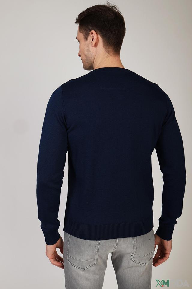 Мужской джемпер Monte Carlo выполнен в классическом синем цвете. Модель имеет V-образный вырез горловины и длинные рукава.