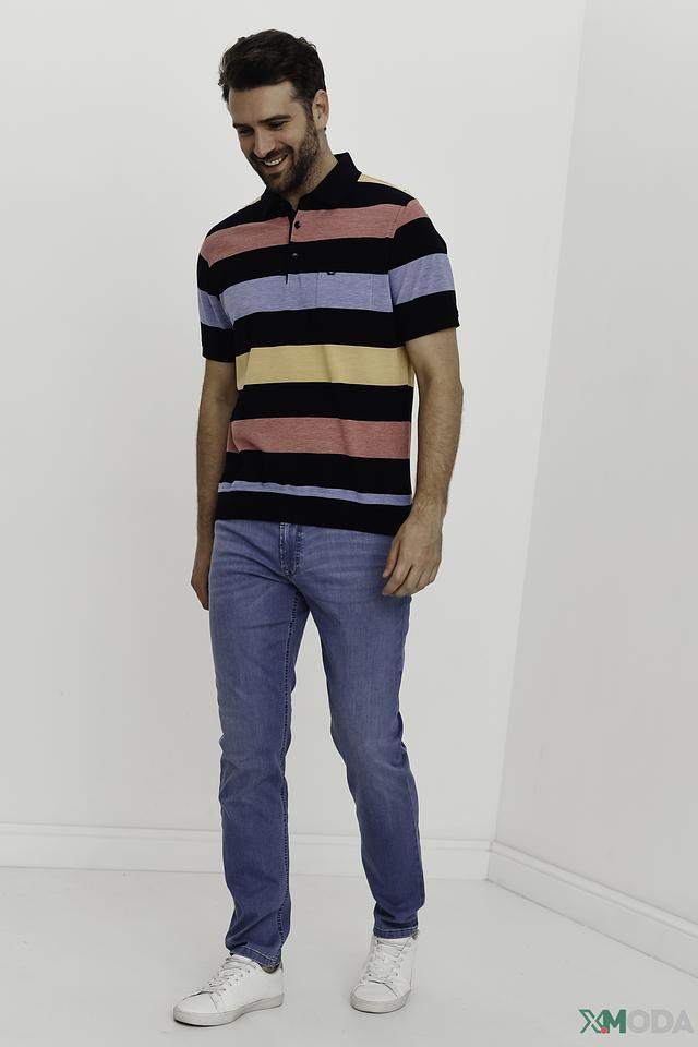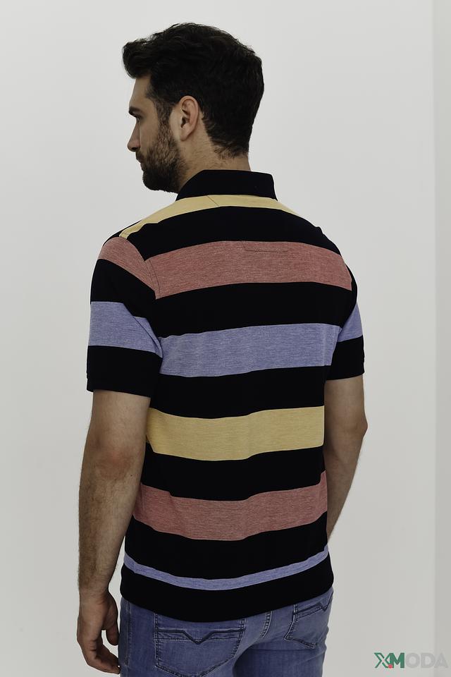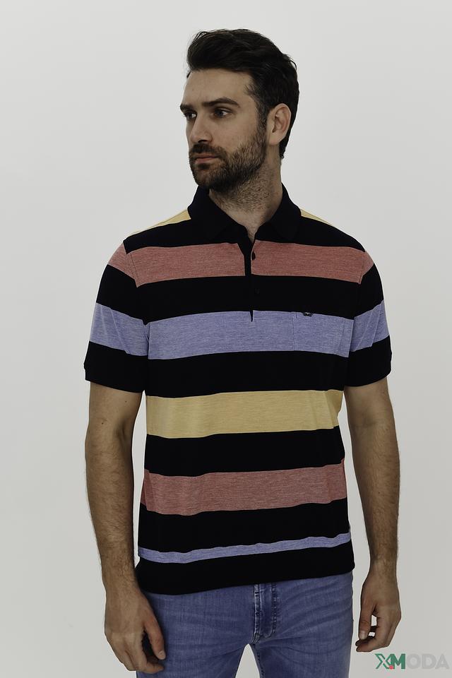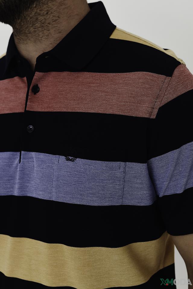 Мужское поло Monte Carlo выполнено в яркой полосатой расцветке. Модель с коротким рукавом и классическим воротником-поло станет отличным дополнением к вашему образу. Состав: хлопок 55%, полиэстер 45%