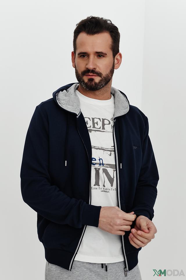 Мужской кардиган Monte Carlo синего цвета на молнии с капюшоном. Изготовлен из 100% хлопка, обеспечивающего комфорт и удобство в носке. Отличный выбор для создания стильного и практичного образа. Состав: хлопок 100%