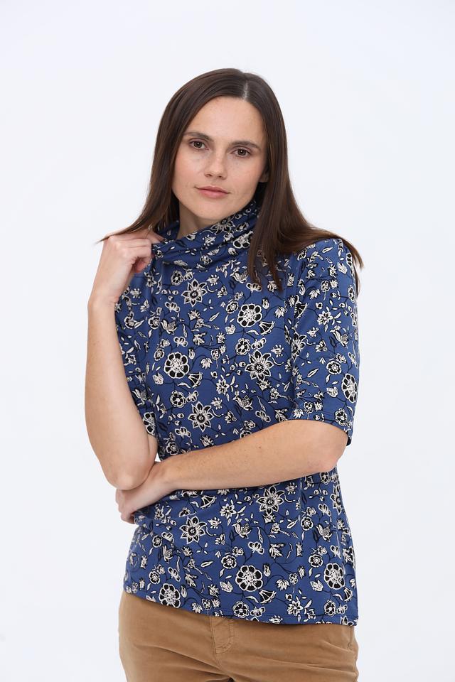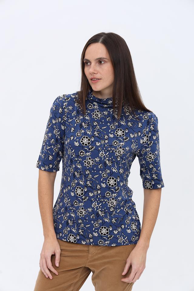 Водолазка More and More синего цвета с нежным цветочным принтом станет стильным дополнением к вашему гардеробу. Изготовлена из мягкой и приятной к телу вискозы с добавлением эластана, обеспечивающего комфортную посадку. Состав: вискоза 95%, эластан 5%