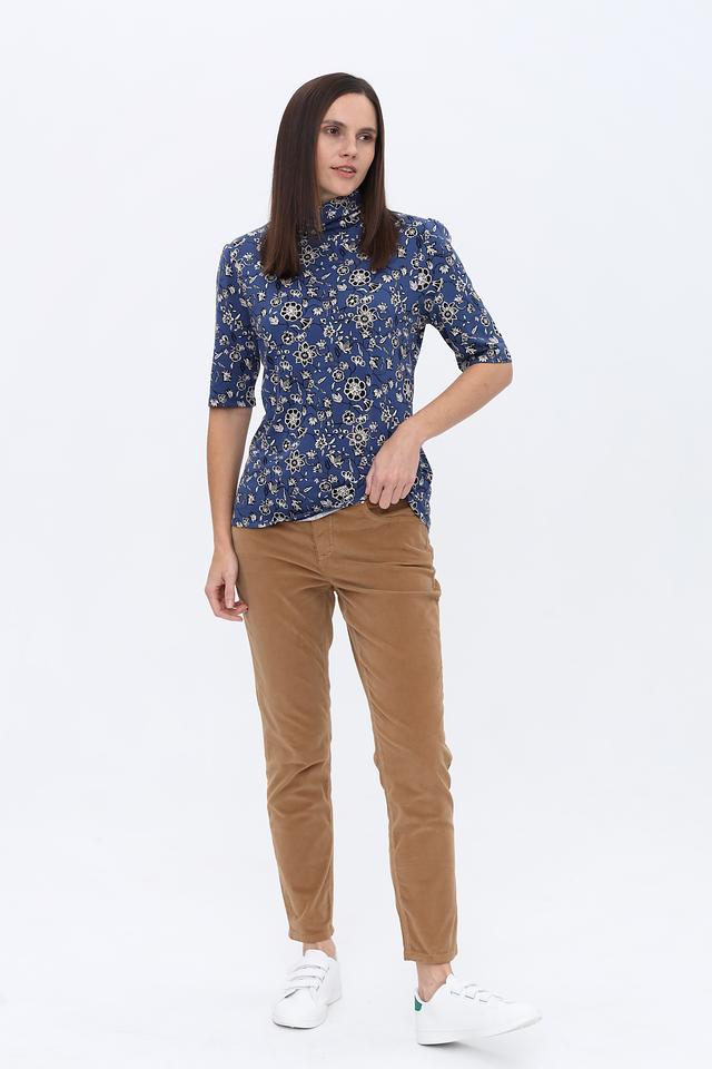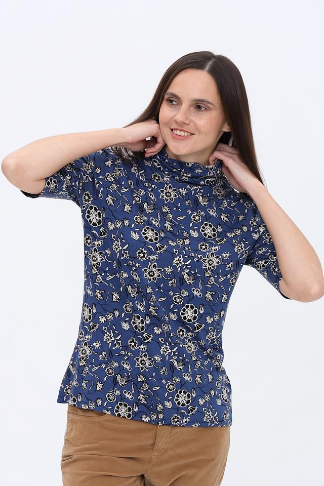 Эта водолазка от More and More выполнена в синем цвете и украшена изысканным цветочным принтом. Модель имеет облегающий силуэт и короткий рукав, что делает ее идеальным выбором для создания как повседневных, так и более нарядных образов.