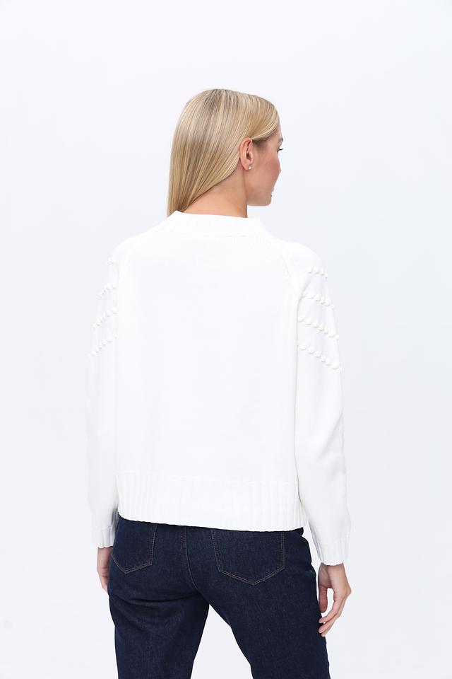 Белый пуловер от MORE and MORE с объёмным декором из бусин. Модель выполнена из мягкого трикотажа с добавлением вискозы, полиэстера и полиамида для комфорта и износостойкости. Состав: вискоза 50%, полиэстер 28%, полиамид 22%