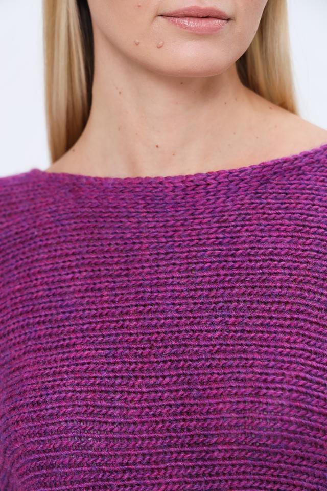 Пуловер имеет интересную фактуру благодаря сочетанию разных оттенков фиолетового цвета в вязке. Он прекрасно сочетается с джинсами, брюками или юбками, создавая стильный и непринужденный образ. Состав: 62% полиакрил, 20% шерсть, 9% вискоза, 9% альпака.