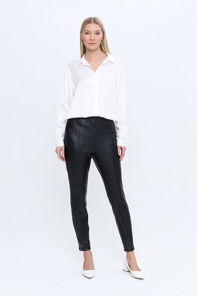 Брюки отличаются прямым кроем и облегающим силуэтом, подчеркивающим достоинства фигуры. Эластичный пояс обеспечивает комфортную посадку и свободу движений. На брюках предусмотрены декоративные швы, которые добавляют им изысканности.