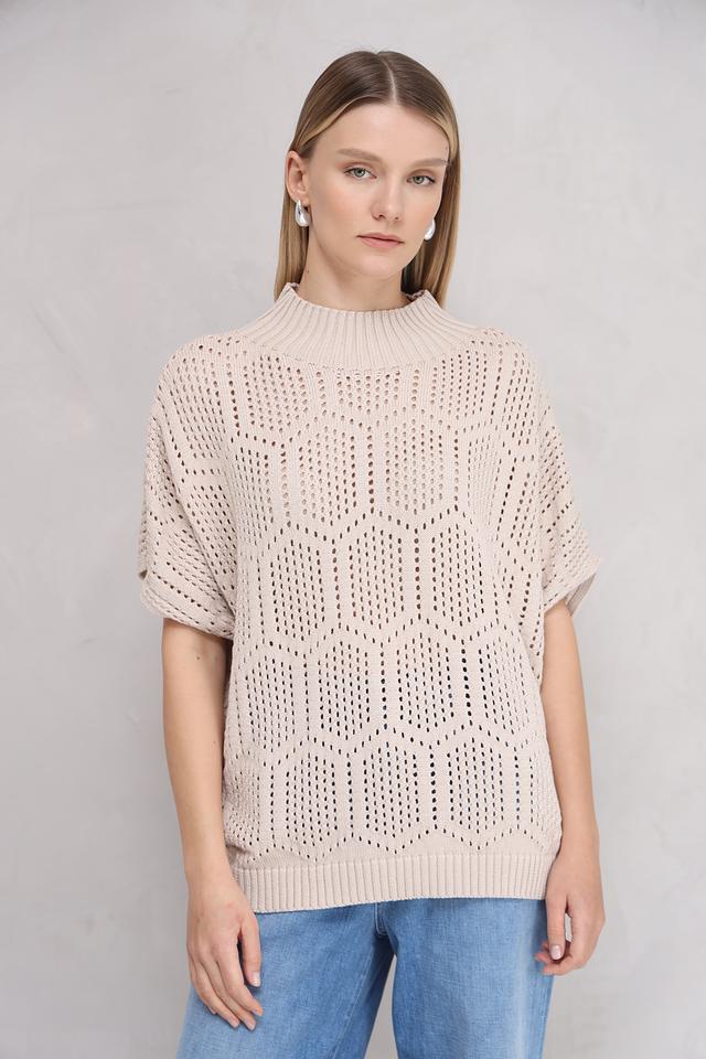 Бежевый пуловер от MORE and MORE с ажурной вязкой и короткими рукавами станет стильным дополнением к вашему гардеробу. Модель выполнена из мягкого и приятного к телу сочетания хлопка и полиакрила. Состав: хлопок 50%, полиакрил 50%